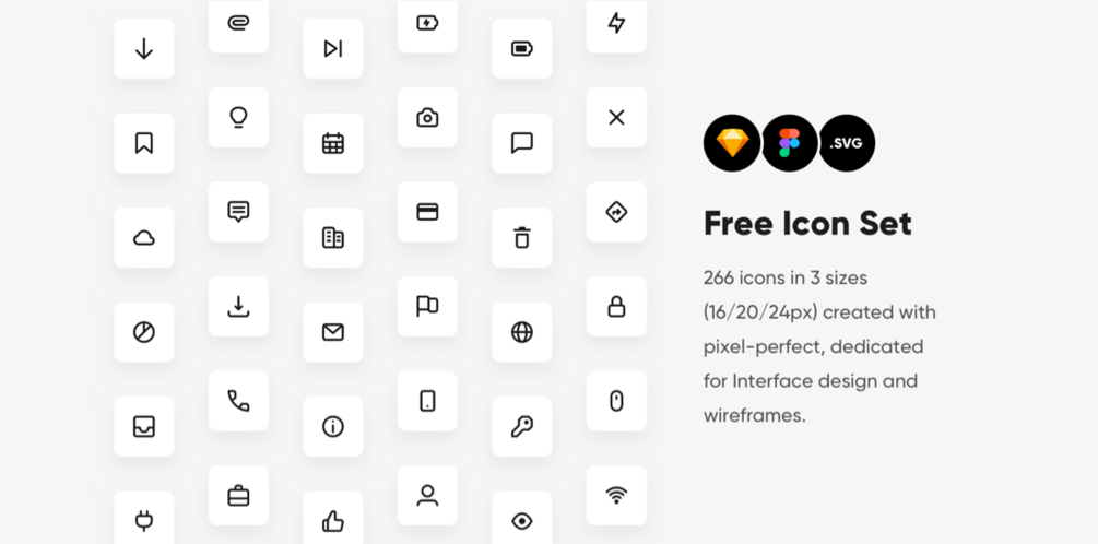 Free 266 responsive icons in 3 sizes (16/20/24px) created with pixel-perfect, dedicated for Interface design and wireframes.